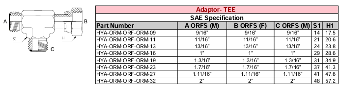AÂ TEE adaptor with ORFS (M) x ORFS (F) x ORFS (M)Â threads is a high-performance hydraulic fitting designed for leak-free connections in high-pressure systems. Here's a detailed breakdown: