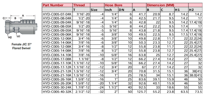37° Flare: The female JIC fitting has a 37-degree flare, which creates a tight mechanical seal when connected to a corresponding male JIC fitting. This design helps prevent leaks without the need for additional sealants.