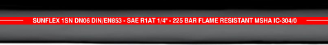 SAE 100 R1AT EN853 1SN Sunflex total core R1S is primed to meet Australian conditions with its unique smooth cover finish and with the easy to identity red lay line. Not only is this an extra flexible design which exceeds industry standards it is also the front runner for everyday use by industry professionals.  • Exceeds SAE/Din spec  • Innovative Extra Flex design • 150,000 impulse cycles  • Easy identification with distinctive red lay line • K Series fittings • Code Matched hose fitting systems • MSHA Approved  • Flame resistant  • 4:1 Safety Factor Â