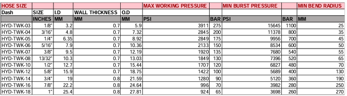 APPLICATION: PETROLEUM BASED HYDRAULIC FLUIDS AND OILS             FITTINGS: X Series Shells  INNER TUBE: White PTFE, OIL RESISTANT                                     TEMP RANGE: -60°C - 220°C REINFORCEMENT: ONE WIRE HIGH TENSILE STEEL WIRE BRAID  COVER: S/S TEFLON BRAIDED, OZONE, OIL AND WEATHER RESISTANT SYNTHETIC RUBBERÂ